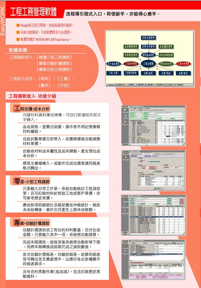 EasyWork Express工程工務管理軟體 , 軟體程式主要系統區分為七個功能模組: